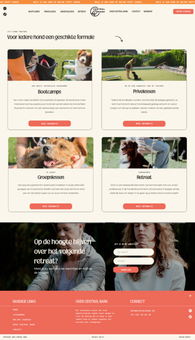 For the Centrak Bark, we created a modern Showit website and a vibrant Shopfiy webshop that perfectly matches their playful identity and community vibe.