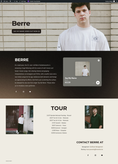for Belgian singer and musician Maksim Stojanac, studio mmooy made a clean, timeless site with his brand colors up front and easy links to music, videos, and shows.