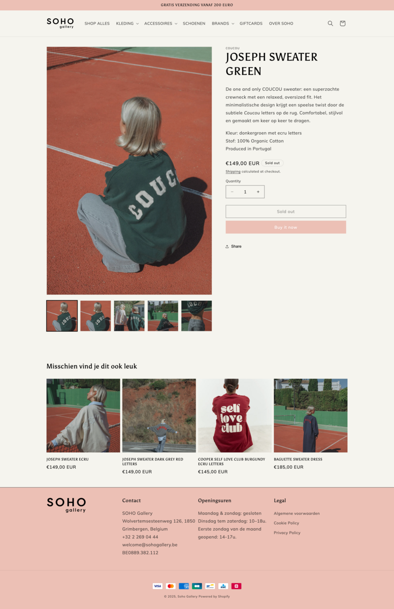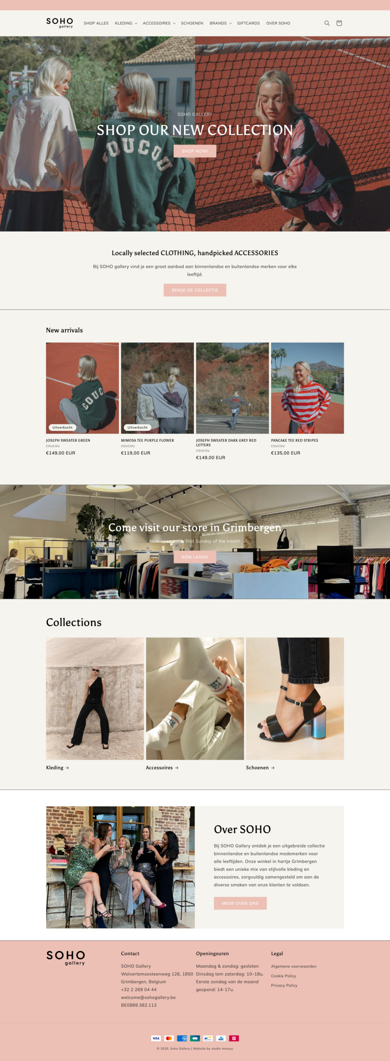 For SOHO Gallery, we created a modern and timeless Shopify webshop that captures their effortless, high-end vibe. The design is clean and minimal, letting their collections shine while keeping the shopping experience smooth and intuitive, just like shopping in their physical store.